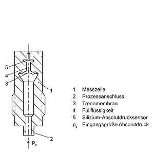 Measuring cell for absolute pressure from the pressure series, function diagram