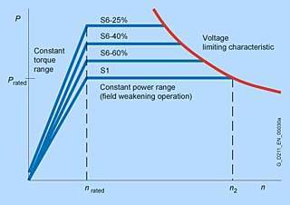 | | Соединение | Сигнальные разъемы (сопрягающий разъем не входит в объем поставки) Клеммная коробка для питания SH 180 и 225: Клеммная коробка сверху SH 280: Клеммная коробка справа NDE | | Опции | Смотри данные по выбору и заказу и главу "Опции“ | Данные по вентиляции и уровень звукового давления | Высота вала SH | Вентиляторный двигатель: потребление тока при | Направление потока воздуха | Уровень звукового давления LpA | Скорость потока воздуха при | | | 400 В/50 Гц (±10%) | 400 В/60 Гц (±10%) | 480 В/60 Гц (+5%, -10%) | | Номинальная нагрузка двигателя и внешнего вентилятора, 50 Гц допуск +3 dB | 50 Гц прибл. | | | A | A | A | | 1 дБ (A) | м3/с (фут3/с) | | Двигатели 1PL6 | | 180 | 0.8 | 1.1 | 1.1 | NDE → DE, DE → NDE | 73 1) | 0.27 (9.54) | | 225 | 1.9 | 2.2 | 2.2 | NDE → DE | 74 1) | 0.38 (13.42) | | 2.8 | 2.8 | 2.8 | DE → NDE | 76 1) | 0.38 (13.42) | | 280 | 2.55 | 2.6 | 2.6 | NDE → DE, DE → NDE | 74 1) | 0.52 (18.36) | 1) Диапазон скорости от 0 до 2000 об/мин. Версия подшипников, тип привода и максимальные скорости | Высота вала/ тип двигателя | Тип подшипников/ тип привода | Тип подшипников | Макс. непрерывная скорость для режима S1 | Макс. лимит скорости 1) | | | | Со стороны двигателя | Обозначение подшипников | n s1 | n s1 2) | n max | n max 2) | | | | | | об/мин | об/мин | об/мин | об/мин | | 100 | Шарикоподшипники с глубокими дорожками качения для выхода муфты или ремня | DE | 6308 C4 | 5500 | 10000 | 9000 | 12000 | | NDE | 6208 C4 | | 132 | Шарикоподшипники с глубокими дорожками качения для выхода муфты или ремня | DE | 6310 C4 | 4500 | 8500 | 8000 | 10000 | | NDE | 6210 C4 | | 160 | Шарикоподшипники с глубокими дорожками качения для выхода муфты или ремня | DE | 6312 C4 | 3700 | 7000 | 6500 | 8000 | | NDE | 6212 C4 | | 180 | Шарикоподшипники с глубокими дорожками качения для выхода муфты или ремня | DE | 6214 C3 | 3500 | 4500 | 5000 | 7000 | | NDE | 6214 C3 | | Цилиндрические подшипники качения для выхода ремня | DE | NU22 14E | 3500 | – | 5000 | – | | NDE | 6214 C3 | | Цилиндрические подшипники качения для увеличенного поперечного усилия | DE | NU22 14E | 3000 | – | 5000 | – | | NDE | 6214 C3 | | 225 | Шарикоподшипники с глубокими дорожками качения для выхода муфты | DE | 6216 C3 | 3100 | 3600 (for 1PH7224) | 4500 | 5500 (for 1PH7224) | | NDE | 6216 C3 | | Цилиндрические подшипники качения для выхода ремня | DE | NU22 16E | 3100 | – | 4500 | – | | NDE | 6216 C3 | | Тип 224, 226 | Цилиндрические подшипники качения для увеличенного поперечного усилия | DE | NU22 16E | 2700 | – | 4500 | – | | NDE | 6216 C3 | | Type 228 | Цилиндрические подшипники качения для увеличенного поперечного усилия | DE | NU22 16E | 2500 | – | 4000 | – | | NDE | 6216 C3 | | 280 | Шарикоподшипники с глубокими дорожками качения для выхода муфты | DE | 6220 C3 | 2200 | – | 3300 | – | | NDE | 6220 C3 | | Цилиндрические подшипники качения для выхода ремня | DE | NU22 0E | 2200 | – | 3300 | – | | NDE | 6220 C3 | 1) Для непрерывной работы (с 30% nmax, 60% 2/3 nmax, 10% простой) для длительности рабочего цикла 10 мин. 2) Версию для увеличенной максимальной скорости смотри в в данных по выбору и заказу для двигателей 1PH7. Срок службы подшпиников Срок службы подшипников ограничивается усталостью материала (долговечность при усталостных нагрузках) или при окончании смазки (срок службы консистентной смазки). Долговечность при усталостных нагрузках (статический срок службы подшипников L10h), в первую очередь, зависит от механической нагрузки. Это соотношение можно увидеть на диаграмме поперечного/осевого усилия. Значения определены в соответствие с DIN/ISO 281. Срок службы консистентной смазки в основном зависит от размера подшипников, скорости, температуры, а также вибрационной нагрузки. Срок службы консистентной смазки может быть увеличен при особенно благоприятных условиях эксплуатации (низкая средняя скорость