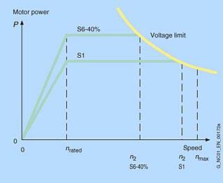 Характеристика Типичная диаграмма частоты вращения/мощности для двигателей 1PM4 с выборочной схемой подключения звезда/треугольник1) с масляным охлаждением и для двигателей 1PM6 1) Типичная диаграмма частоты вращения/мощности для двигателей 1PM4 1) с водяным охлаждением Диаграмма показывает типичную зависимость между частотой вращения двигателя и мощностью привода в двигателях 1PM для следующих режимов работы согласно IEC 60034-1: S 1: Непрерывная работа S 6: Непрерывный режим работы с прерывистой нагрузкой и относительной продолжительностью включения 60% (S6-60%) или 40% (S6-40%) при максимальной продолжительности цикла 10 минут.