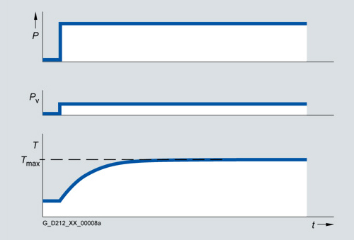 Следующий шаг, который необходимо выполнить, это проверить, поддерживаются ли температурные границы. Для этого нужно рассчитать ток двигателя при базовой нагрузке. Для конфигурации, основанной на рабочем цикле с постоянным периодом состояния "включено", нужно рассчитать ток перегрузки, исходя из требуемого вращающего момент перегрузки. Правила расчета для этой цели зависят от типа используемого двигателя (синхронный, асинхронный двигатель) и рабочего сценария (рабочие циклы с постоянным/переменным периодом состояния "включено", свободный рабочий цикл).