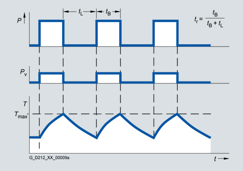 Рабочие циклы с постоянным периодом состояния "включено" ставят специальные требования к рабочим характеристикам, как, например, функция скорости, например, M = константа, M ~ n2, M ~ n или P = константа.
