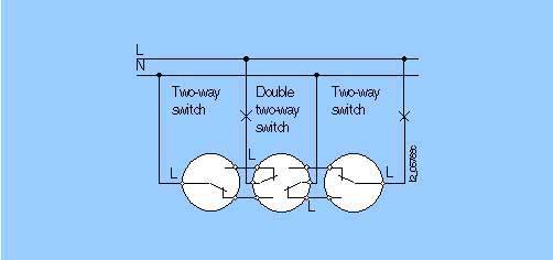 Схема подключенияДвойная схема отключения их двух точекзаказные номера электрических частей: 5TA2 156 / 5TA2 118 / 5TA2 156 Двойная схема отключения их двух точек с двумя двойными выключателями света из двух точекзаказные номера электрических частей: 5TA2 118 / 5TA2 118 |