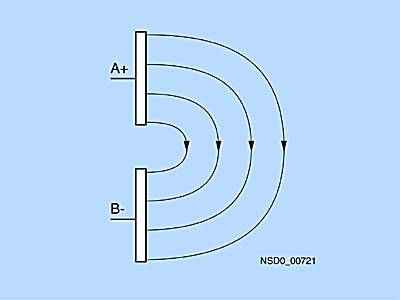 Активная поверхность емкостного датчика образована двумя концентричными металлическими электродами, аналогичными развернутым обкладкам конденсатора. Обкладки А и В включены в контур обратной связи высокочастотного автогенератора, настроенного так, что при отсутствии объектов вблизи обкладок он не генерирует. При приближении объекта к активной поверхности датчика он попадает в электрическое поле перед обкладками и изменяет емкость обратной связи. Генератор начинает генерировать колебания, амплитуда которых измеряется и преобразуется в команду на коммутацию. Частота коммутацииВ особых условиях возбуждения колебаний при иных скважностях импульсов возможны более высокие частоты коммутации, чем указанные в технических данных. Расстояние срабатыванияВсе данные относятся к заземленному металлическому воздействующему объекту, поверхность которого соответствует активной поверхности датчика BERO. Расстояние срабатывания sr, для воздействующих объектов из непроводящих материалов зависит от относительной диэлектрической проницаемости εr и проводимости (см. характеристику). Диэлектрическая проницаемость различных материалов: