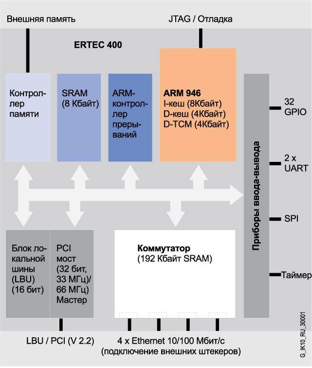 Наличие мощного встроенного микропроцессора ARM 946 обеспечивает необходимую гибкость для учета всех требований конкретной решаемой задачи. ERTEC 400 предназначена для применения в программируемых контроллерах, использующих для повышения производительности коммутируемые сети Fast Ethernet и IT технологии.