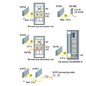 | 3 | 2 | Для подключения N‑PCI к локальной шине; подключение к разветвителю (AV) в устройстве подключения удаленной шины или TELEPERM M AS шкафа | Sub‑D socket ← 2.5 m → ES 902 | 6DS8 208-8KC |
