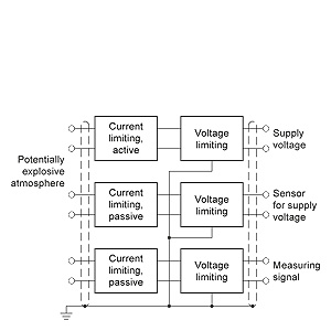 Защитные барьеры ограничивают ток и напряжения в линиях питания, кабелях датчиков и линиях передачи сигналов измерительных ячеек, установленных на взрывоопасном участке.