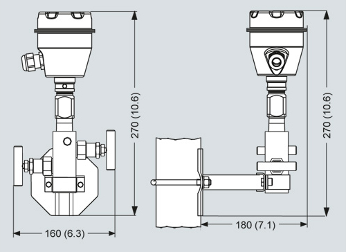 All valve manifolds should preferably be secured with the respective mounting brackets. The transmitters are mounted on the valve manifold and not on the unit itself.