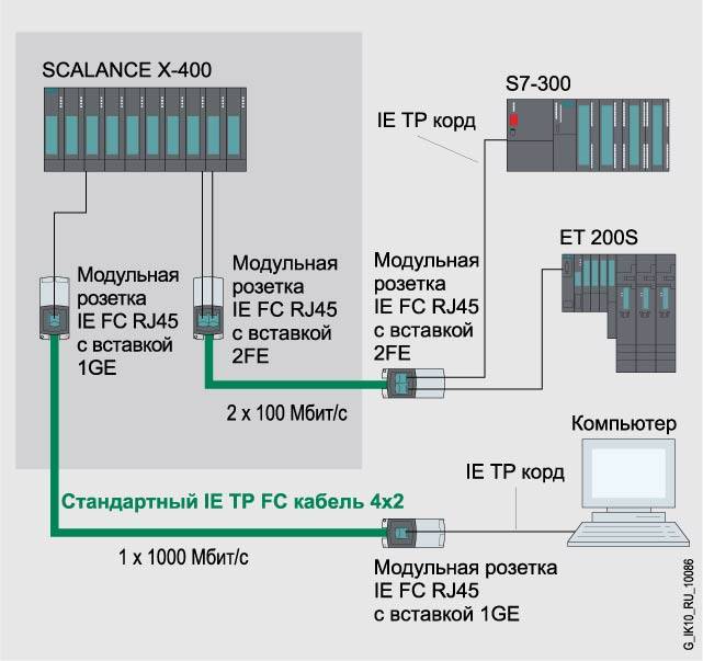 Интеграция Конфигурация системы с использованием IE FC RJ45 модульной розетки 100 Mбит/сек и 1000 Mбит/сек Конфигурация системы со SCALANCE W