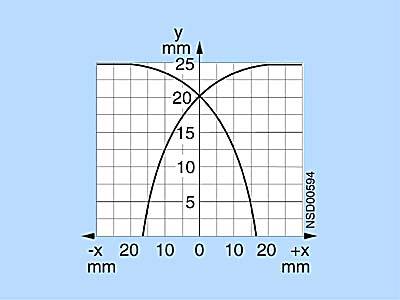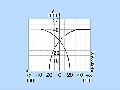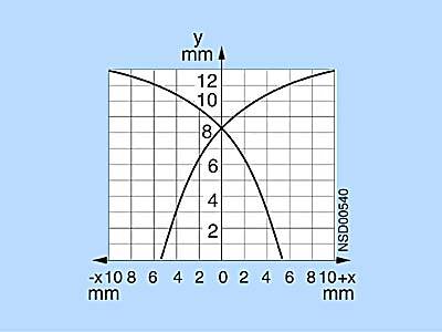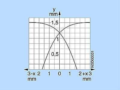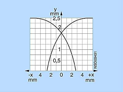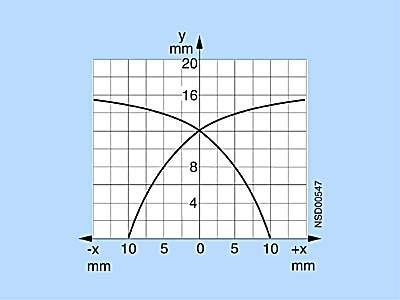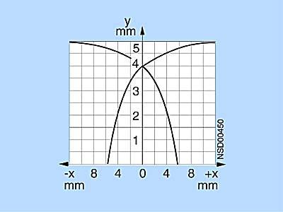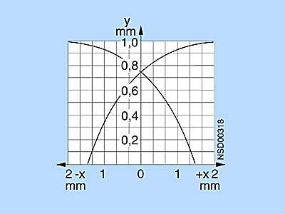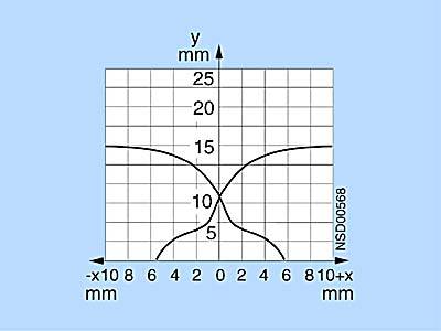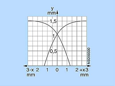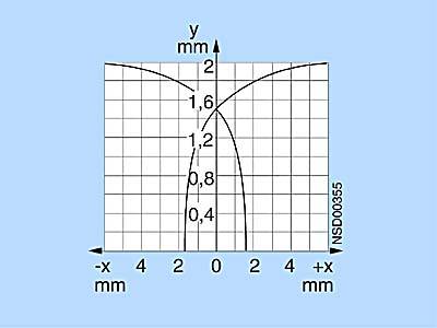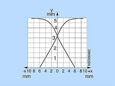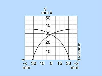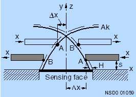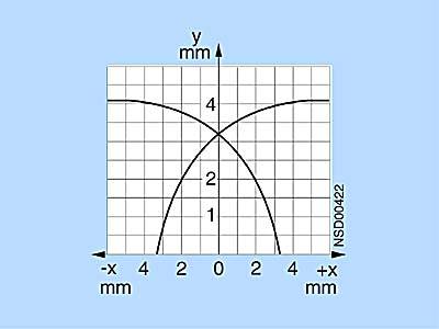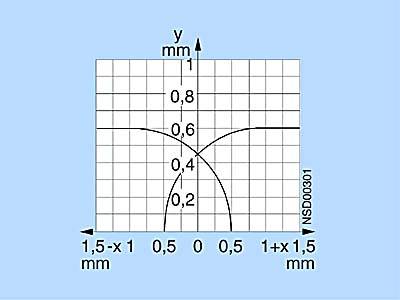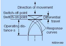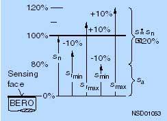 См. схемы, стр . Схема pnpВыходной каскад содержит pnp-транзистор, подключающий нагрузку к положительному рабочему напряжению (+UB). Нагрузка подключается между выходом и отрицательным рабочим напряжением (0 В). Возможность программированияПо выбору реализация функции замыкания или размыкания при помощи ползункового переключателя в нижней части корпуса или вставной перемычки в цоколе электронного блока. Возможно только у BERO прямоугольной формы с повышенными требованиями и с увеличенным расстоянием срабатывания. Коэффициенты пересчетаНормальное расстояние срабатывания s относится к точно определенным условиям измерений (см. "Расстояние срабатывания"). При других структурах, как правило, получаются меньшие расстояния срабатывания. Коэффициенты пересчета (см. технические данные) - лишь ориентировочные величины. При различных сплавах и в зависимости от типа могут быть и иные значения. Влияние геометрии Если вместо стандартного воздействующего элемента, указанного в стандарте EN 50 010, используется пластинка меньших размеров, то расстояние коммутации следует умножить на коэффициент пересчета. Последовательное включениеСм каталог FS 10 Остаточное напряжениеЭто напряжение, измеренное на нагрузке при запертом выходе. Остаточный ток irЭто ток , протекающий при запертом выходе через выходной транзистор , следовательно, через нагрузку (его прежде всего следует учитывать при параллельном включении). Остаточная пульсация σМаксимальная величина остаточной пульсации (размах) не должна превышать 10% от расчетного напряжения Un. При слишком большой остаточной пульсации коммутационные свойства могут быть неопределенными. Исправить положение можно путем использования сглаживающего конденсатора большей емкости или регулируемого источника питания. Точка возврата в исходное положение BМесто, например, в зоне демпфирования, в котором в момент изменения сигнала находится нижняя задняя кромка воздействующего элемента при его отходе от датчика. Расстояние срабатыванияРасстояние срабатывания - это расстояние, на котором измерительная пластина, приближающаяся к активной поверхности бесконтактного датчика, вызывает изменение сигнала. Измерение расстояния срабатывания производится согласно EN 50 010 со стандартной измерительной пластиной при её движении в осевом направлении. Расчетное расстояние срабатывания sn Расчетное расстояние срабатывания Sn датчика BERO - это характеристика датчика, не учитывающая индивидуального разброса параметров и отклонений, обусловленных такими внешними факторами как температура, напряжение и пр. Это расстояние срабатывания действительно при использовании стандартного воздействующего элемента, соответствующего EN 50 010. Если воздействующий элемент отличается от стандартного материалом и/или размерами, используются коэффициенты пересчета. Реальное расстояние срабатывания sr Расстояние срабатывания, измеренное для определенного экземпляра согласно EN 50 010. Допуск при изготовлении составляет 10%: 0.9 sn < sr < 1.1 sn Полезное расстояние срабатывания su В него входят ожидаемые дополнительные отклонения, обусловленные изменяющимися в нормальных пределах температурами и рабочими напряжениями. С учетом реального расстояния срабатывания для надежной конструкции имеем: 0.81 sn < su < 1.21 sn s aРабочее расстояние срабатывания 