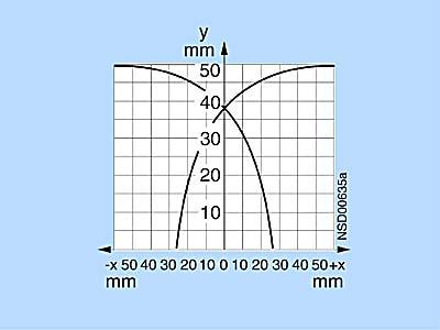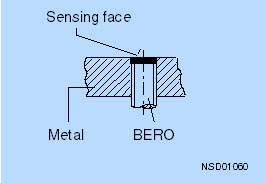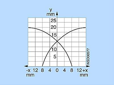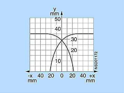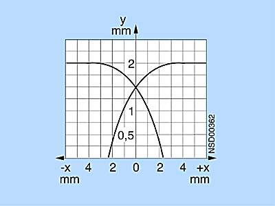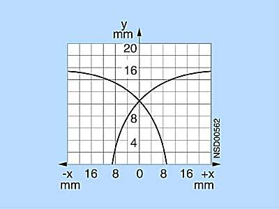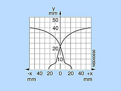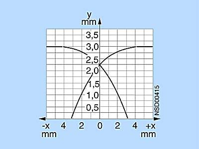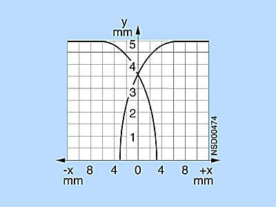 Момент затяжкиБесконтактные датчики BERO могут быть механически повреждены при слишком сильном затягивании гаек. Максимально допустимые моменты затяжки указаны в технических данных. Рабочее расстояние срабатывания SaСмотри расстояния срабатывания Дистанция срабатывания ΔxРасстояние между воздействующим элементом осью Z датчика BERO в точке срабатывания A. ВыходБесконтактные датчики BERO выпускаются с различными схемами выходов. 2 провода, DC или AC/DC, нагрузка последовательна с BERO. 3 провода, DC, pnp, нагрузка между A и L - 3 провода, DC, npn, нагрузка между A и L+ 4 провода, антивалентный, DC, нагрузка между A1, A2 и L- Выходное сопротивлениеДля того, чтобы выходное напряжение соответствовало коммутационному состоянию и без внешней нагрузки, бесконтактные датчики BERO имеют встроенное выходное сопротивление. При работе с высокими частотами коммутации должно быть подключено нагрузочное сопротивление (для уменьшения электрической постоянной времени). Аксиальное приближениеАксиальное приближение - это приближение воздействующего элемента вдоль опорной оси Z активной поверхности бесконтактного датчика. Выходной токДатчики рассчитаны на определенный максимальный выходной ток. При превышении, даже кратковременном, этого значения включается защита от перегрузки. Лампы накаливания, конденсаторы и другие большие емкостные нагрузки, например, длинные провода, оказывают влияние, аналогичное перегрузки. Задержка готовности tvЗависящее от датчика время, которое проходит до того, как датчик BERO приходит в готовность к работе после подачи рабочего напряжения (см. также ложный импульс на включение). Рабочее напряжениеРабочее напряжение указывается с остаточной пульсацией 10%. Рабочая температураРабочая температура не должна быть выше указанной. Бесконтактный датчик может быть поврежден, и его рабочие характеристики становятся неопределенными. Опорная ось zОпорная ось - ось, проходящая перпендикулярно центру активной поверхности бесконтактного датчика BERO. МонтажБесконтактные датчики для встраивания заподлицо Бесконтактные датчики для встраивания заподлицо могут встраиваться во все металлы. Для правильного функционирования должно быть обеспечено необходимое свободное пространство. Бесконтактные датчики для встраивания незаподлицо При установке бесконтактных датчиков для встраивания не заподлицо в проводящие материалы (металлы) необходимо соблюдать минимальные расстояния до материала. Это относится к встраиванию "условно заподлицо". Допустимо встраивание заподлицо в непроводящие материалы.