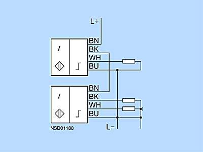 Схема подключения 1 Схема подключения 2 Схема подключения 3 Схема подключения 4 Схема подключения 5 Схема подключения 6 Схема подключения 7 Схема подключения 8 Схема подключения 9 Схема подключения 10 Схема подключения 11 Схема подключения 12 Схема подключения 13 Схема подключения 14 Схема подключения 15 Схема подключения 16 Схема подключения 17 Схема подключения 18 Схема подключения 19 Схема подключения 20 Схема подключения 21 Схема подключения 22 Схема подключения 23 Схема подключения 24 Схема подключения 25 Схема подключения 26 Схема подключения 27 Схема подключения 28 Схема подключения 29 Схема подключения 30 Обозначение цветов соединительных кабелей в соответствии с IEC 60 757: BK = Черный BU = Голубой BN = Коричневый WH = Белый Примеры подключенийПараллельное соединение Версия DC2-проводные BERO, для ПЛК Не возможно, т.к. суммарный ток в выключенном состоянии всех BERO должен быть меньше удерживающего тока нагрузки 3-проводные BERO, pnp 3-проводные BERO, npn 4-проводные BERO, pnp Версия AC/DCСуммарный ток всех BERO должен быть меньше удерживающего тока нагрузки Примеры подключенияПоследовательное подключение 1) Версия DC2-проводные BERO, для ПЛК Не возможно, т.к. n ≤ Ub 15 V / 8 V Ub PLC: 24 V 3-проводные BERO, pnp n ≤ Ub Umin / 2.5 V + 1 Uc = Ub (n * 2.5 V) 3-проводные BERO, npn n ≤ Ub Umin / 2.5 V + 1 Uc = Ub (n * 2.5 V) 4-проводные BERO, pnp Версия AC/DCn ≤ Ub / 20 V Uc = Ub (n * 8 V) Примеры подключенияПаралелльное подключение с 1 контактом (NO или NC) Версия DC2-проводные BERO, для ПЛК 3-проводные BERO, pnp 3-проводные BERO, npn 4-проводные BERO, pnp Версия AC/DCПри питании от постоянного напряжения диод должен быть подключен параллельно первичной индуктивной нагрузке. Примеры подключенияПоследовательное подключение с 1 контактом (NO или NC) 1) Версия DC2-проводные BERO, для ПЛК 3-проводные BERO, pnp Другие подключения не возможны. 3-проводные BERO, npn 4-проводные BERO, pnp Версия AC/DCUb = рабочее напряжение Uc = минимальное рабочее напряжение при нагрузке n = кол-во BERO Umin = минимально разрешенное рабочее напряжение 1) При определении времени срабатывания необходимо иметь в виду также время задержки power-up. Цвета соединительных кабелей в соответствии с IEC 60 757: BK = Черный BN = Коричневый BU = Голубой WH = Белый | |||||||||||||||||||||||||||||||||||||||||||||||||||||||||||||||||||||||||||||||||||||||||||||||||||||||||||||||||||||||||||||||||||||||||||||||||||||||||||||||||||||||||||||||||||||||||||||||||||||||||||||||||||||||||||||||||||||||||||||||||||||||||||||||||||||||||||||||||||||||||||||||||||||||||||||||||||||||||||||||||||||||||||||||||||||||||||||||||||||||||||||||||||||||||||||||||||||||||||||||||||||||||||||||||||||||||||||||||||||||||||||||||||||||||||||||||||||||||||||||||||||||||||||||||||||||||||||||||||||||||||||||||||||||||||||||||||||||||||||||||||||||||||||||||||||||||||||||||||||||||||||||||||||||||||||||||||||||||||||||||||||||||||||||||||||||||||||||||||||||||||||||||||||||||||||||||||||||||||||||||||||||||||||||||||||||||||||||||||||||||||||||||||||||||||||||||||||||||||||||||||||||||||||||||||||||||||||||||||||||||||||||||||||||||||||||||||||||||||||||||||||||||||||||||||||||||||||||||||||||||||||||||||||||||||||||||||||||||||||||||||||||||||||||||||||||||||||||||||||||