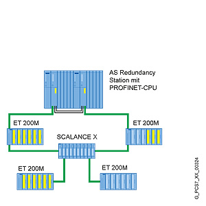 Максимальный коэффициент готовности с минимальными временами парирования отказа достигается при использовании отказоустойчивой(резервированной) AS (FH-системы) в сочетании с резервированием системы распределенной периферии. Резервирование системы относится к тому типу PROFINET IO-коммуникаций, где каждая станция распределенной периферии устанавливает коммуникационные соединения с каждым из двух резервированных центральных процессоров отказоустойчивой станции AS по топологии сети. В отличие от одностороннего подключения станций распределенной периферии только к одному ЦП, отказ ЦП в этом случае автоматически не приводит к отказу подключенных к нему станций распределенной периферии.