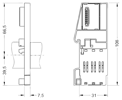 Интерфейсный модуль IM151-1 монтируется непосредственно на профильную шину без использования терминального модуля.