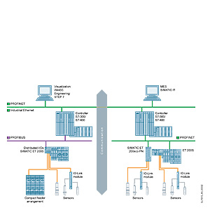 Таким образом, продуктивность увеличивается на всех фазах жизненного цикла установки - конфигурирования, ввода в эксплуатацию и работы. Решения SIEMENS на основе IO-Link позволяют интегрировать датчики и исполнительные устройства полевого уровня в комплексные системы управления Totally Integrated Automation (TIA).