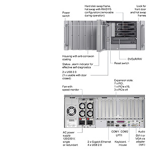 Промышленная рабочая станция размещается в окрашенном металлическом корпусе 19" (4 HUs)исполнения, защищенном от пыли фильтром и избыточным давлением за счет вентиляции. Надежный корпус имеет дизайн для удобного обслуживания и сервиса..