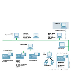 Сетевая коммуникация в будущем будет играть доминирующую роль в компьютеризированном производстве. IT-Solutions для обрабатывающих станков с целью интеграции управления (information technology) из информационной системы Motion Control (MCIS) предлагает передовые решения для интеграции систем управления ЧПУ и SPS в электронную обработку данных пользователя: