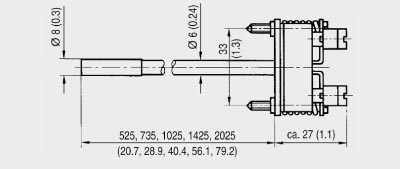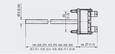 Измерительная вставка для термометра сопротивления для дымового газа, размеры в мм (дюймах)