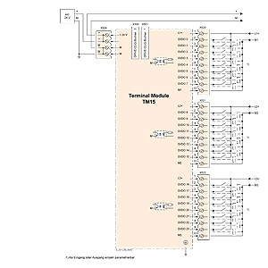 Количество цифровых входов и выходов приводной системы можно увеличить при помощи Клеммного модуля ТМ15.