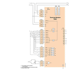 Клеммный модуль TM41 подает сигналы TTL, которые моделируют инкрементальный датчик, то есть осуществляет передачу на более высокий уровень управления. Интерфейс датчика (моделирование инкрементального аналогово-цифрового преобразователя) получает сигнал датчика от Блока управления, например инкрементальный датчик sin/cos путем назначения параметра.