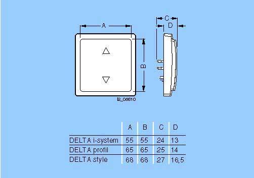 | | DELTA i-system DELTA profil DELTA style | 55 x 55 x 24 mm (вкл. пружину) 65 x 65 x 25 mm (вкл. пружину) 68 x 68 x 27 mm (вкл. пружину) |