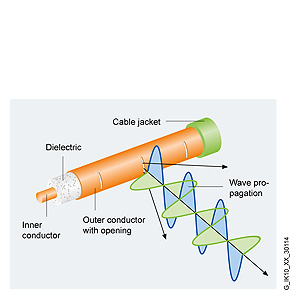 RCoax - это коаксиальный кабель с тщательно нанесенными отверстиями на внешнем проводнике. Через эти отверстия по всей длине кабеля обеспечивается свободное распространение радиоволн в обоих направлениях.
