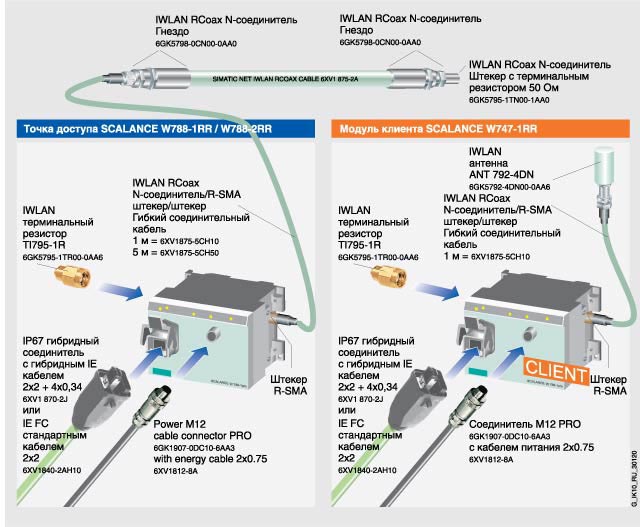Коммуникация PROFINET IO через IWLAN RCoax систему с подключением к Industrial Ethernet