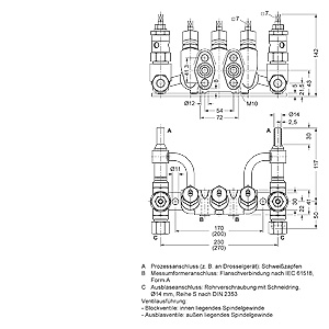 Соединение для измерительного преобразователя давления выполнено как фланцевое соединение, продувочное соединение - как трубное резьбовое соединение с накидным кольцом.