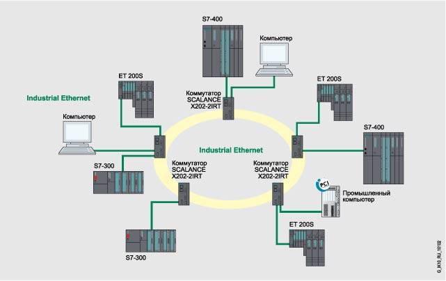 - Коммутаторы серии SCALANCE X-200IRT для построения линейных и звездообразных структур сети Industrial Ethernet со скоростью передачи данных 10/100 Мбит/с, в которой поддерживается изохронный режим (тактовая синхронизация) и обмен данными в реальном масштабе времени.