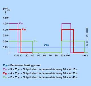 При выборе тормозных блоков / тормозных сопротивлений нужно учитывать наряду со средним значением мощности торможения также необходимую пиковую мощность торможения.