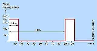 Средняя мощность торможения определяется, как указано ниже: Средняя мощность торможения = 180 kW x 15 s / 90 s = 30 kW P 20 = 4.5 x 30 kW = 135 kW Максимальная мощность = 0.8 x 180 kW = 144 kW Результат: развиваемая максимальная мощность имеет решающее значение для выбора тормозного блока и тормозного сопротивления, т.е. нужно предусматривать тормозной блок и соответственно тормозное сопротивление ≥144 кВт.