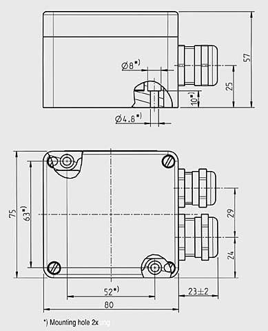 | -40 ... +90 °C | | Степень защиты по EN 529 | IP66 | | Вибростойкость клемм согласно DIN VDE 0611 11/77 | 12 Гц и 50 Гц, амплитуда 1мм | | Сопротивление изоляции клемм | ≥ 1012 Ω см | | Габариты (ВxШxД) в мм | 80 x 75 x 57 | |