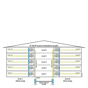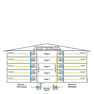 Другие системы, такие как оптоволокно или W-LAN, также могут быть использованы для связи отдельных зданий и для обмена телеграммами с групповыми адресами.