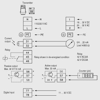 - 1 токовый выход, 1 частотный/импульсный выход, 1 релейный выход, 1 цифровой вход