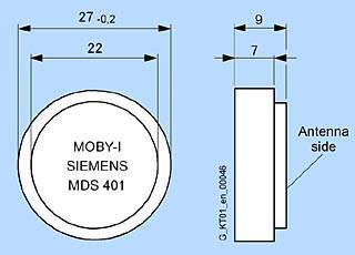 Компактный накопитель данных (ферроэлектрическое ОЗУ емкостью 8 Кбайт, в форме кнопки, может быть заделан в металл) для идентификации устройств, предназначенных для крепления маленьких деталей, размеры корпуса Ø 27 мм x 9 мм, род защиты IP 67, температурный диапазон до +85 °C