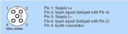 | Контакт 1 = Питание датчиков L+ Контакт 2 = Вход данных I Контакт 3 = Питание датчиков L- Контакт 4 = Вход данных I Контакт 5 = Контакт заземления