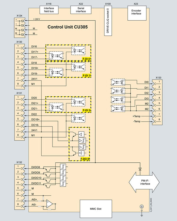 Модуль управления CU305 управляет силовым модулем PM340 через интерфейс PM-IF.