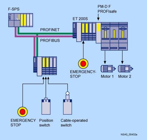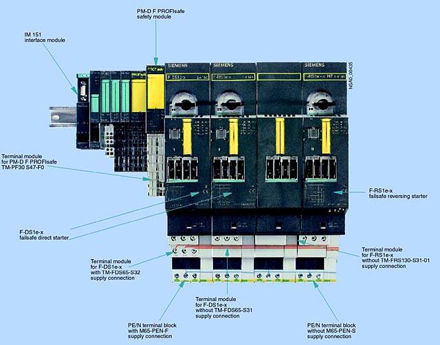 Решения PROFIsafe с силовыми модулями F-исполнения Высочайшая гибкость предлагаемых решений F-модули фидеров нагрузки для PROFIsafe: В системах, поддерживающих функции экстренного отключения питания, селективное отключение F-модулей фидеров нагрузки выполняет вышестоящий модуль контроля питания PM-D F PROFIsafe. Для каждого F-модуля фидера нагрузки может быть сформировано 6 групп отключения. Интерфейс связи с датчиками F-системы образуют F-контроллеры SIMATIC. Интерфейс между PROFIsafe и установками с системами безопасности поддерживается через модуль умножителя контактов F-CM с четырьмя выходными контактами. Пример: Возможные варианты построения PROFIsafe систем различного назначения приведены в руководстве "SIMATIC ET 200S Motor Starters". Примеры, позволяющие существенно ускорить разработку собственных F-приложений, свободно распространяются через Internet: Дополнительную информацию Вы можете получить в Интернете по адресу. или Дополнительную информацию Вы можете получить в Интернете по адресу.