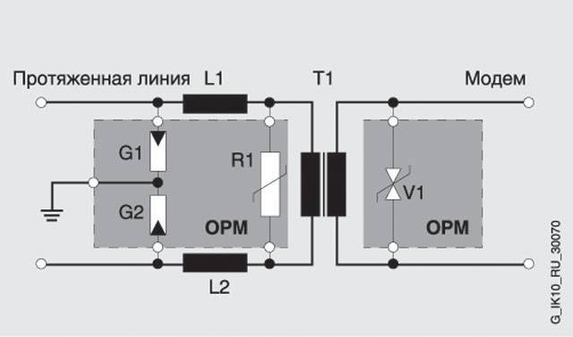 - Защита модема от перенапряжений, возникающих в выделенной линии связи.