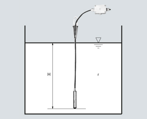 The hydrostatic pressure of the liquid column acts on the sensor diaphragm, and transmits the pressure to the piezo-resistive bridge in the sensor.