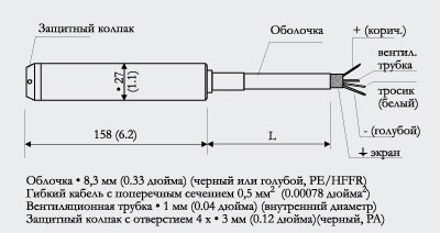 These pressure transmitters are equipped with an electronic circuit fitted together with the sensor in a stainless steel housing. The cable also contains a strength cord and vent pipe.