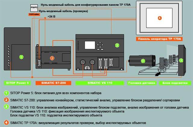 - Просто и удобно – все функции четко отображаются через S7-200 и Сенсорную Панель TP 170A. Образец выбирается из базы Сенсорной Панели 170A или контролируется S7-200 в зависимости от применения.