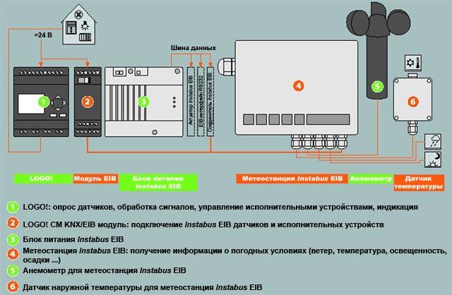 Автономная коммутация в сети instabus EIB в системах автоматизированного управления зданиями Подключение центральной метеорологической станции instabus EIB к логическому модулю LOGO! и автономное управление в системе автоматического управления зданием.