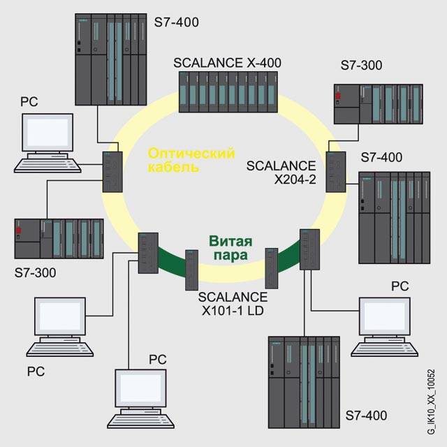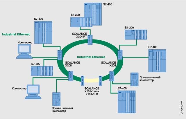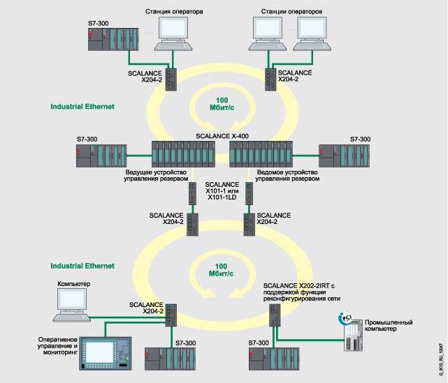 Функции - Построение электрических и оптических сетей Industrial Ethernet с линейной, звездообразной и кольцевой топологией.