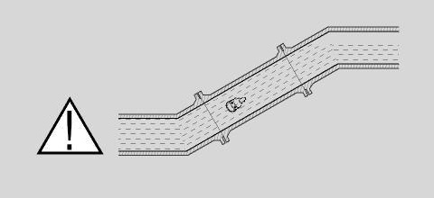 Не монтировать в высшей точке трубопроводной системы или в вертикальной трубе со свободным выпуском