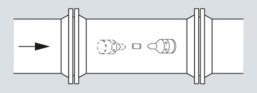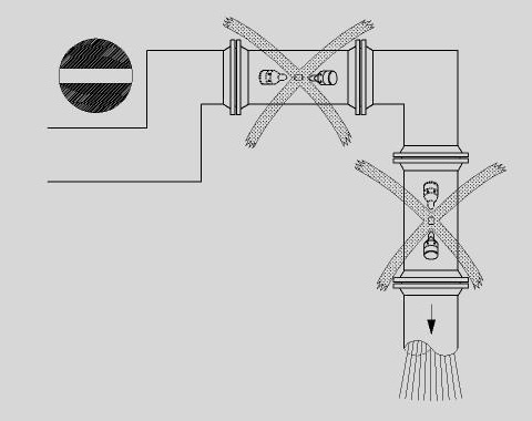 Вентили всегда должны устанавливаться за расходомером. Это не относится только к установке измерительного датчика в вертикальную трубу. В этом случае для установки нулевой точки необходимо предусмотреть вентиль под измерительным датчиком. При этом выбрать такой вентиль, который в полностью открытом состоянии не вызывает изменения потока.