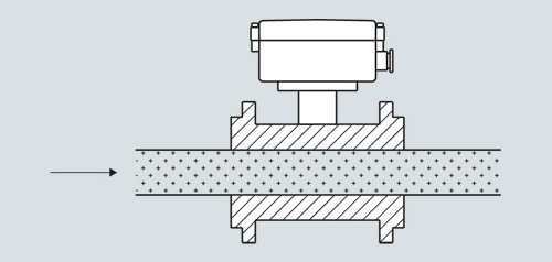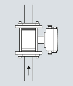 Монтаж в нагнетательные трубопроводы Рекомендуемое направление протока: вверх. Таким образом удается практически полностью исключить влияние пузырьковгаза / в жидкости на измерение.