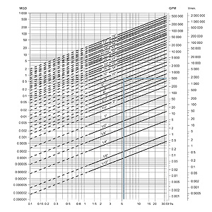 | v = 283.67 · Q / (Pipe I.D.)2 | v : [м/сек], Q : [USmgd], Pipe I.D. : [дюймов] |