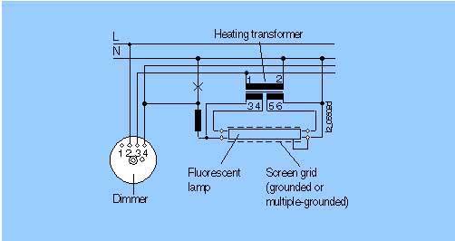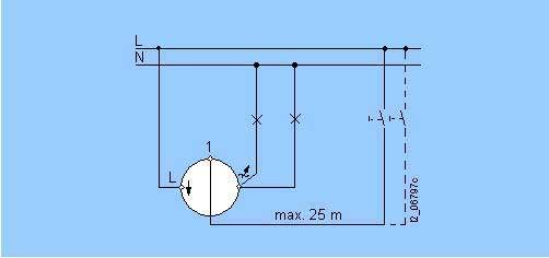 Поворотный диммер для схем отключения света из одной или двух точек 20-800 ВA и 20-1000 ВA, 50 Гц, 230 V переменного тока, люминесцентные лампы, отсечка фазы по переднему фронтуПрименение в схеме отключения из одной точки (вкл/откл и регулирование уровня освещенности из одной точки) Применение в схеме отключения из двух точек (вкл/откл из двух точек и регулирование уровня освещенности из одной точки)