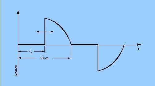 Принцип отсечки фазы по заднему фронтуПринцип отсечки фазы по заднему фронту состоит в том, что во время прохождения каждой полуволны синусоиды через нуль включается нагрузка, которая отключается по истечении времени tz. Таким образом, обеспечивается возможность изменения действующего значения напряжения лампы и, тем самым, ее яркости. При включении возникновение помех исключается, так как напряжение сводится к нулю. При отключении производится сильное гашение возможных точек резонанса за счет действия полной нагрузки трансформаторов. Предусматривать дополнительные сети для подавления напряжения помех не нужно,благодаря отсутствию точек резонанса, вызывающих нежелательную пульсацию или мигание ламп.
