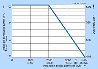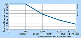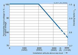 Параметры коррекции для повышенной температуры окр.среды и высоты установки Если Сетевой и Моторный модули работают при температуре окр.среды > 40 °C (104 °F) и высота установки > 2000 м (6563 фута), оба графика понижения мощности должны учитываться. Понижение напряжения kU должно также быть принято во внимание при высоте установки > 2000 м (6563 фута) в соответствии с IEC 60664-1. По причине узкого диапазона напряжения, блоки с напряжением 660 В и 690 В не могут быть использованы при высотах 3500 м (11485 футов) над уровнем моря или более.